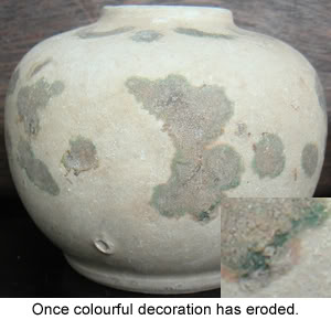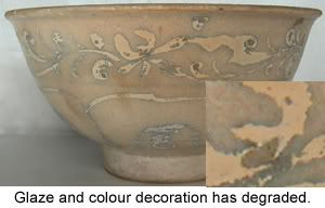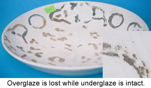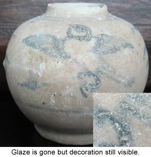 | Lớp tráng men đã mất nhưng họa tiết vẫn có thể thấy |