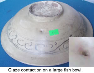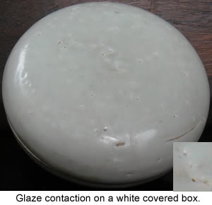 Một số lỗi nhỏ trên bề mặt của đồ gốm sứ có thể do sự co rút nước men, vốn khá phổ biến trên các sản phẩm gốm sứ Trung Quốc và Châu Á. Chúng xuất hiện như những vết lõm nhỏ trong nước men, chủ yếu thấy trên hàng gốm thương mại hơn là gốm hoàng gia.