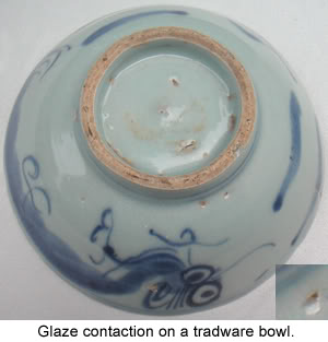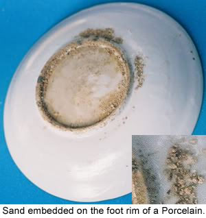 Vành đế của đồ gốm sứ thường được đặt trên cát trong khi nung và một số vật thể sẽ dính vào đáy của đồ. Ngoài ra, tro hay vật liệu khác bay trong quá trình nung cũng có thể gắn vào bề mặt của vật.