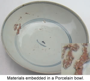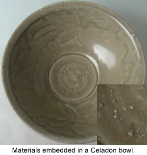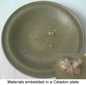| Vật thể lạ dính vào một tô men ngọc bích |