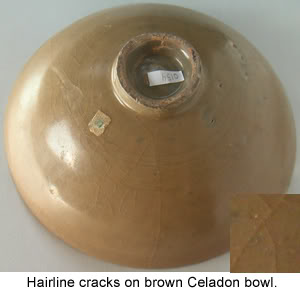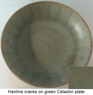 | Vết rạn như sợi tóc trên bề mặt tô men ngọc |