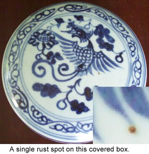 | Nốt gỉ sắt trên đồ tráng men ngọc bích thường khó thấy hơn |